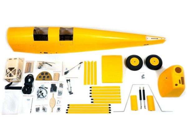 Die Tragflächen des Modells wurden in Rippenbauweise erstellt. Alle Holzteile sind bereits bespannt und bestechen durch ihre saubere Verarbeitung. Weiter liegt dem Bausatz eine Motorhaube und ein Fahrwerk-Set bei.