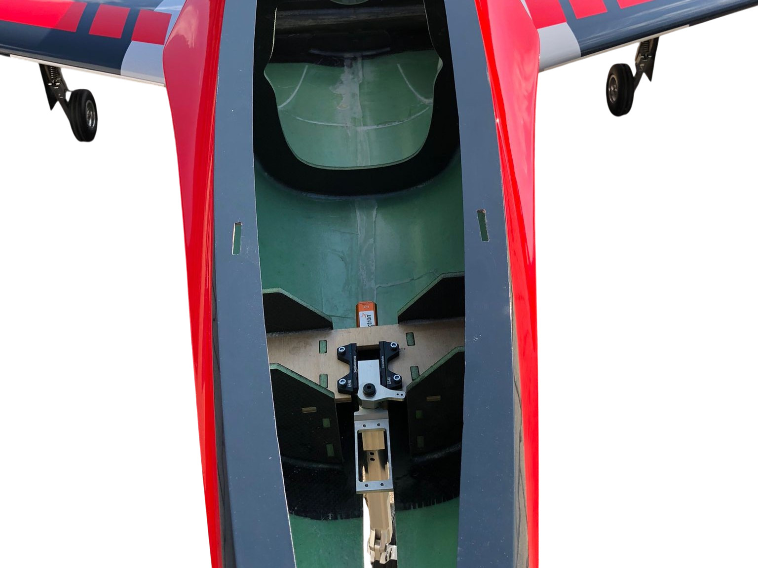 Die Struktur der Futura V3 basiert auf einem konsequenten Leichtbaukonzept. Die Spanten sind aus hochwertigem Airex gefertigt und zusätzlich mit CFK verstärkt, um den Belastungen im dynamischen Kunstflug standzuhalten. Sämtliche Steckungen für Flächen und Leitwerke bestehen aus Kohlefaser, was nicht nur Gewicht spart, sondern auch für maximale Steifigkeit sorgt. Die Fahrwerks- und Turbinenaufnahmen sind aus mehrfach verleimtem Holz gefertigt, um die nötige Robustheit für den harten Flugalltag zu gewährleisten.