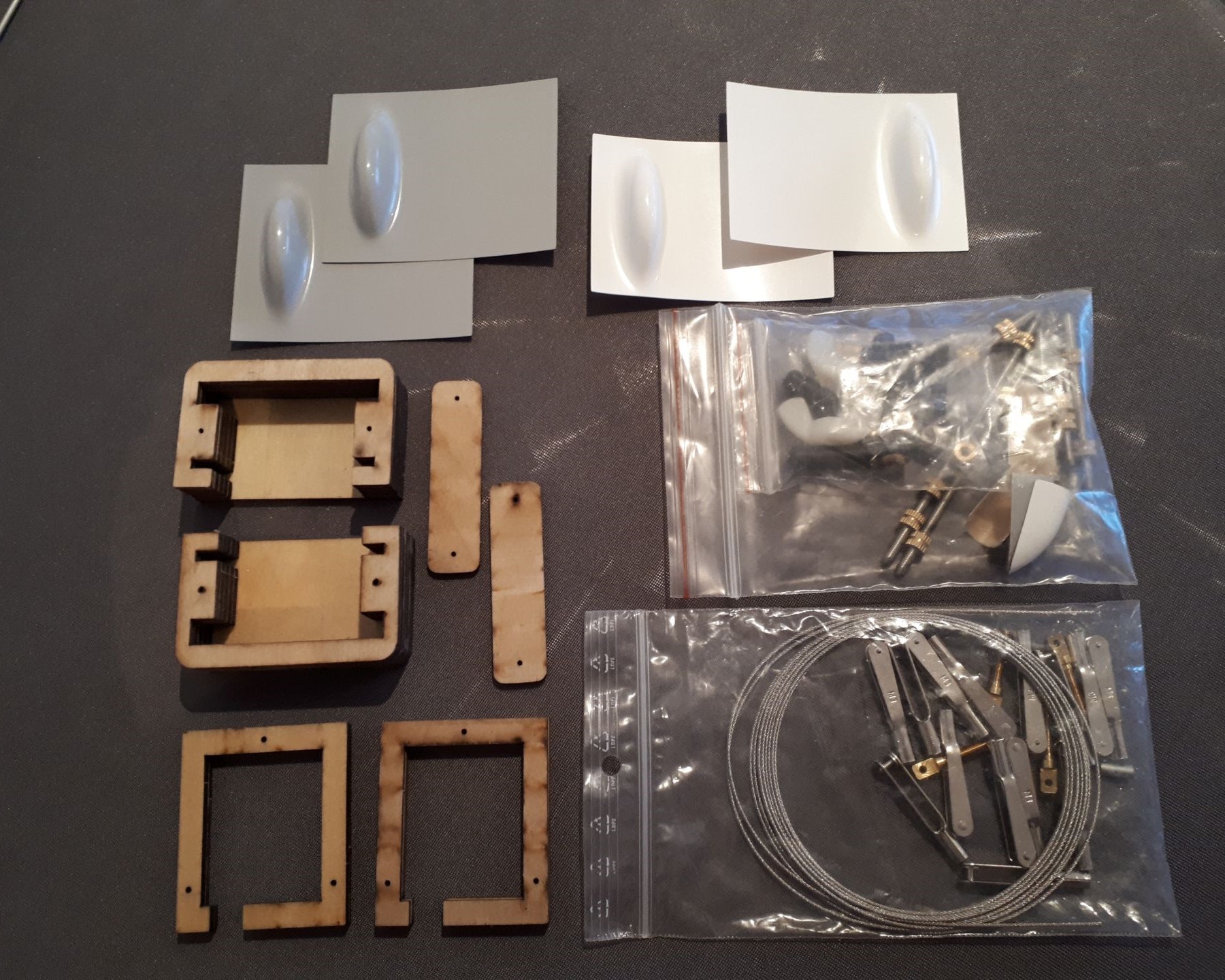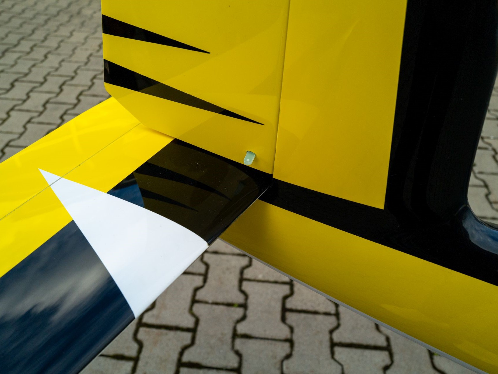 Das Modell wird in einem hohen Vorfertigungsgrad geliefert, alle Ruder sind fertig angeschlagen und als elastic-flaps mit Spaltabdeckungslippen an der Tragfläche ausgeführt. Die Flächen- und Leitwerksverschraubungen sind fertig hergestellt, die Ruderhörner bereits verklebt, und die Servohalterungen sind teilweise eingebaut b.z.w. liegen als Frästeile einbaufertig bei. Das Cockpit ist fertig gebaut mit Sitzwanne und Instrumentenpilz, die Kabinenhaube fertig aufgezogen und mit der Halterung versehen.