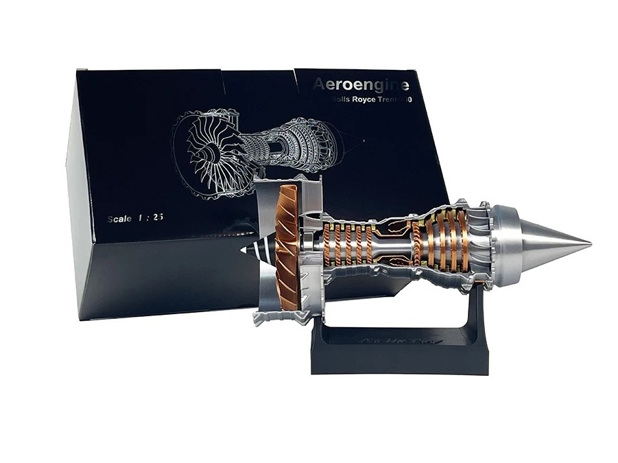 Das TR-900-2 Triebwerksmodell ist ein detailreicher Bausatz des Rolls-Royce Trent 900, das als Antrieb für den Airbus A380 entwickelt wurde. Dieses Modell vermittelt eindrucksvoll den Aufbau und die Funktionsweise moderner Turbofan-Triebwerke. Mit angetriebenen Fans, präziser Darstellung der Verdichter- und Turbinenstufen sowie robuster Bauweise eignet es sich ideal als Lehrmodell, Sammlerobjekt oder dekoratives Ausstellungsstück.
