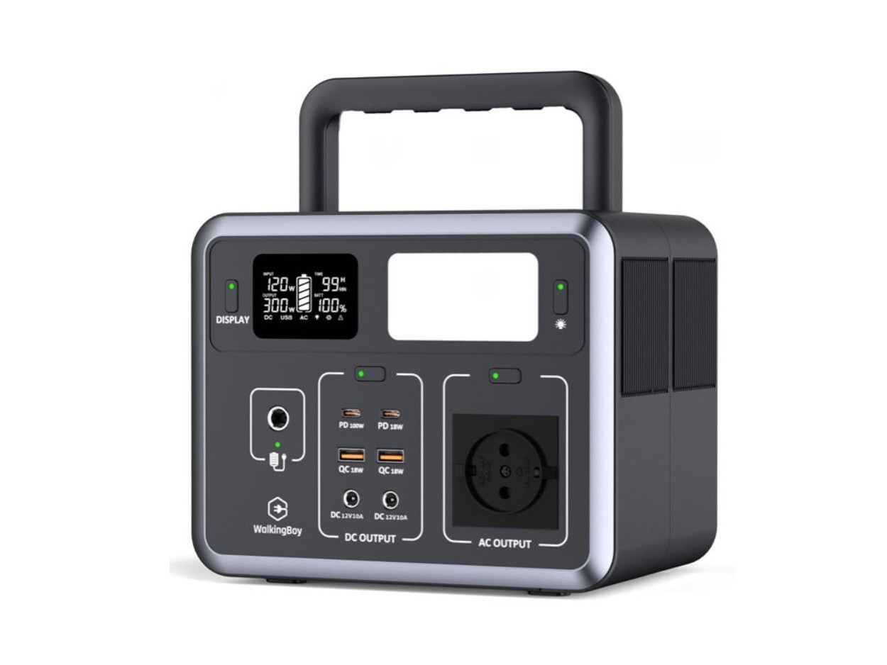 Die tragbare Power Station kann für Geräte mit bis zu 300W Dauerverbrauch verwendet werden. Die integrierte Lithium-Batterie hat eine Kapazität von 288 Wh. Dank dem praktischen Griff und einem geringen Gewicht, können Sie das Gerät überall mitnehmen. Über das Display kann jederzeit die Batterieleistung, der Ladestatus sowie der Stromeingang und Ausgang kontrolliert werden. Diese Powerbank ist der ideale Begleiter für unterwegs, beim Campen, im Garten oder als Notstromversorgung Zuhause.
