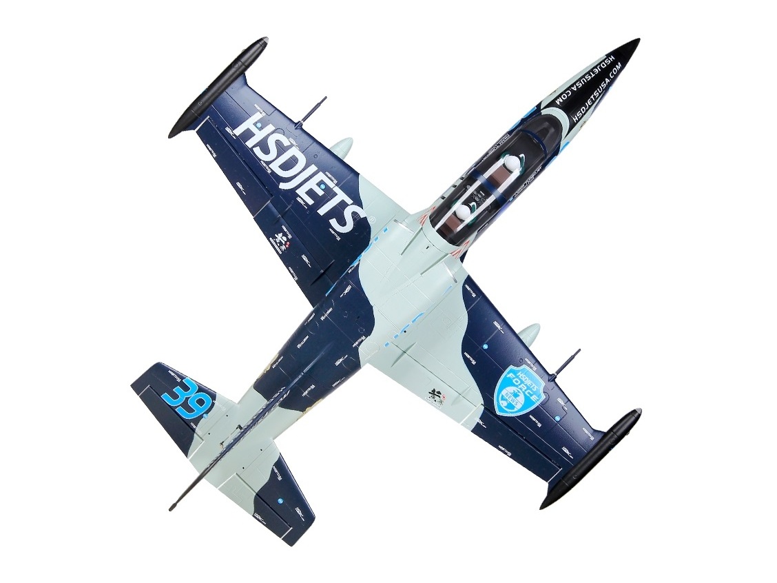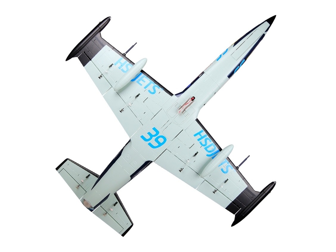 Das Modell ist weitgehend vorgefertigt und innert kurzer Zeit bereits flugfertig. Die L39 verfügt über funktionsfähige Landeklappen, ein gefedertes, elektrisches Aluminium-Einziehfahrwerk mit elektrischer Bremse, Scale-Beleuchtung, Aterburner-LED-Ring (mit Gas gekoppelt) usw.. Alle Komponenten wie das gefederte Fahrwerk, Tanks, Schubrohr, Digital-Servos, u.s.w, sind bereits eingebaut. Zum Betrieb fehlt nur noch eine Turbine mit ca. 6kg Schub, sowie Sender/Empfänger und Empfänger-Akkus.