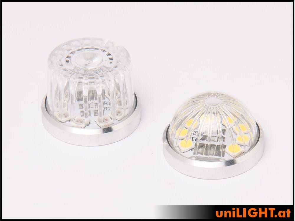Diese neuen Rundlichter werden mit einer aufsteckbaren zylinderförmigen und einer kugelförmigen Kappe aus hochtransparentem Polycarbonat geliefert. Die Auswahl und Verklebung erfolgt selber direkt am Modell, geeignet Kleber sind z.B. transparentes Epoxy oder Uhu Por.