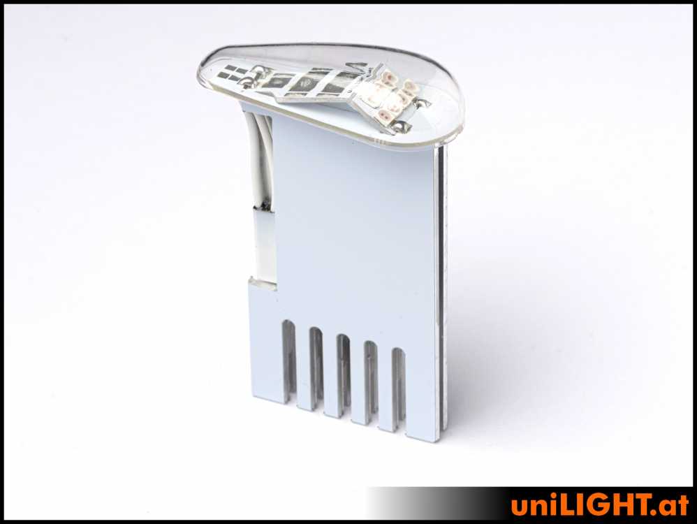 Die profilförmige Bauform läßt sich perfekt integrieren, die Kappe liegt bei und kann am Modell auch noch lackiert und eingefärbt werden. Zum Lieferumfang gehört eine hochtransparent und extrem bruchfeste Abdeckkappe aus gespritzem Polycarbonat.