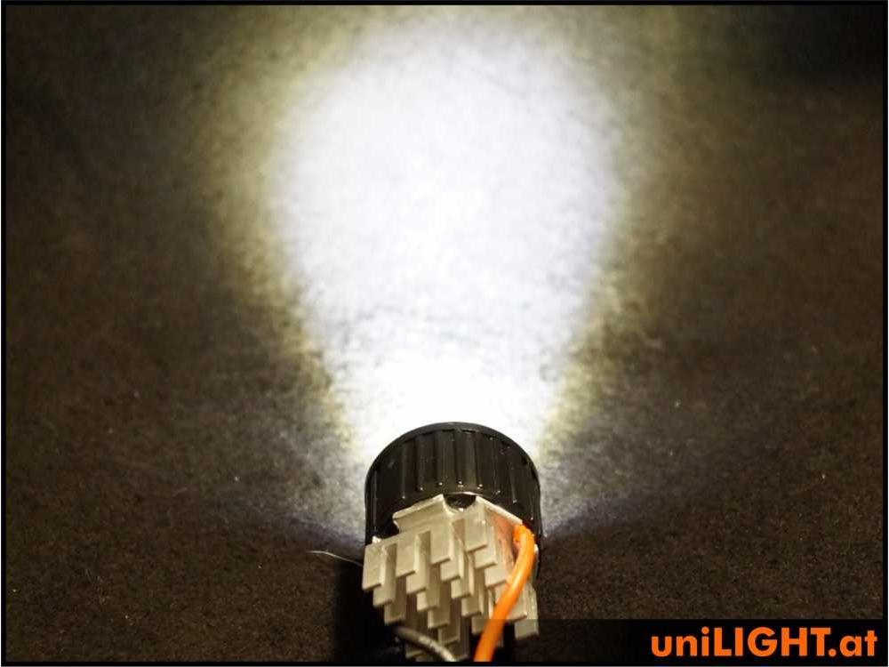 Kurzer, günstiger Hochleistungsstrahler. Kompakte Bauform als Landelicht oder Front-ACL. Kleiner Kühlkörper für dauerhaften Betrieb bei Luftkühlung.