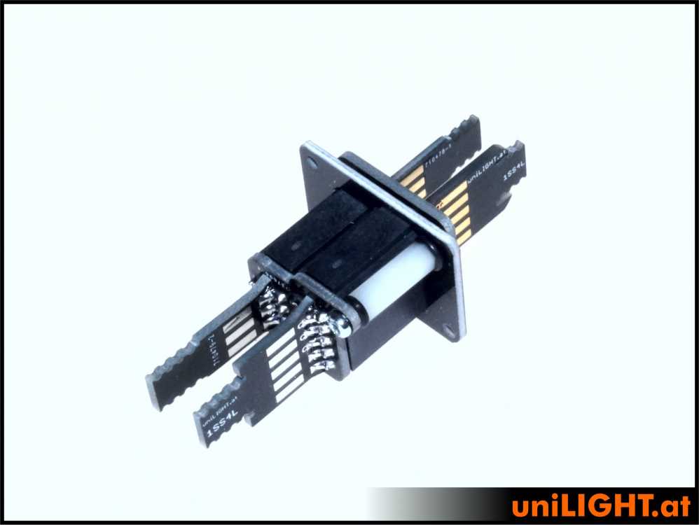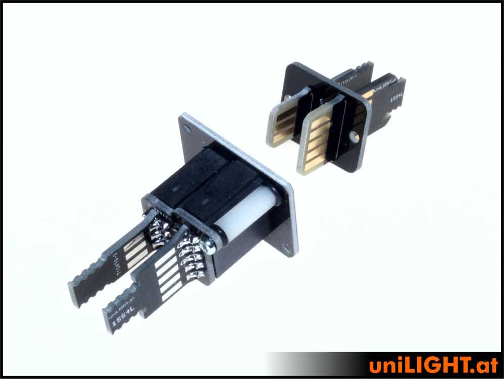 Floating DIRECT & Floating HEADER sind zwei Gruppen von Stecksystemen, die ausschließlich für die selbstständige Kontaktierung von Flügel und Rumpf entwickelt wurden. Es hängen keine Kabel und Stecker herum, die beschädigt oder verschmutzt werden können. Die Messerleiste wird beim Zusammenbau direkt mit der Buchse kontaktiert. Dies ist bei uniCONNECT zuverlässig möglich, weil die Buchsenleisten nicht starr sondern „floating“ mit dem Träger verbunden sind und sich daher bei leichten Bewegungen und Vibrationen der Flügel mit bewegen können. Natürlich ist das System nur für starr verschraubte, rechtwinkelige und sauber geführe Verbindungen geeignet. Die Stecker können keine mechanische Belastung von einer ungenauen Stecker aufnehmen!