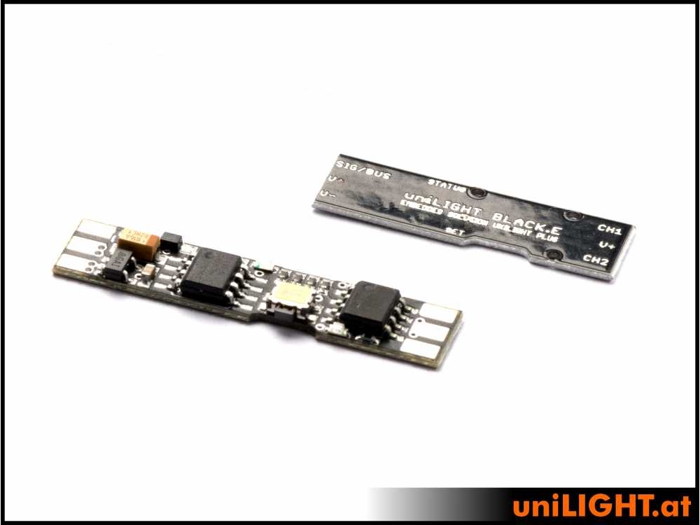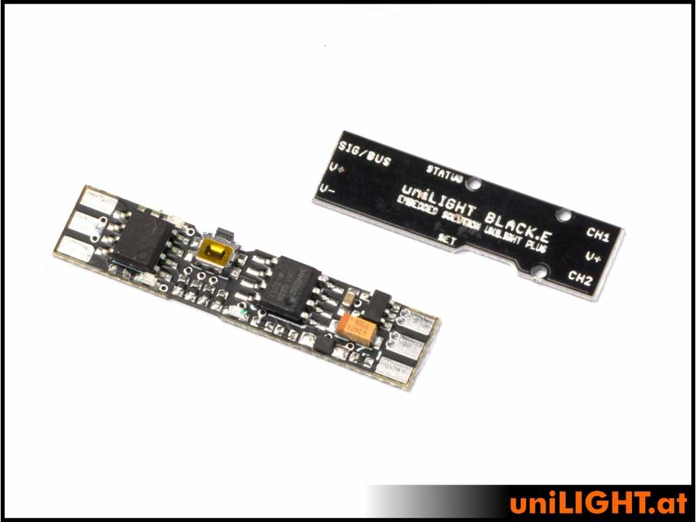 Die EMBEDDED ist die aktuell kleinste, aber am weitesten entwickelte Lichtsteuerung von uniLIGHT.at. Sie ist mit ca. 7x30x2.5mm nur so klein wie Streichhölzer, so dass sie überall, auch direkt in Lichter oder industrielle Anwendungen intergiert werden kann. Dabei unterstützt sie 1 ½ Funktionen: also einen vollwertigen, konfigurierbaren Kanal und einen zweiten mitgeschalteten Schaltkanal um z.B. das Navigationslicht eines DUAL Lichts betreiben zu können.
