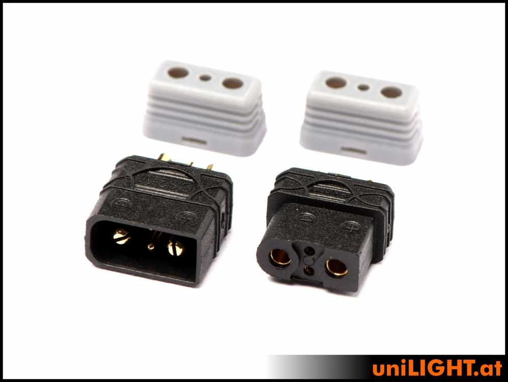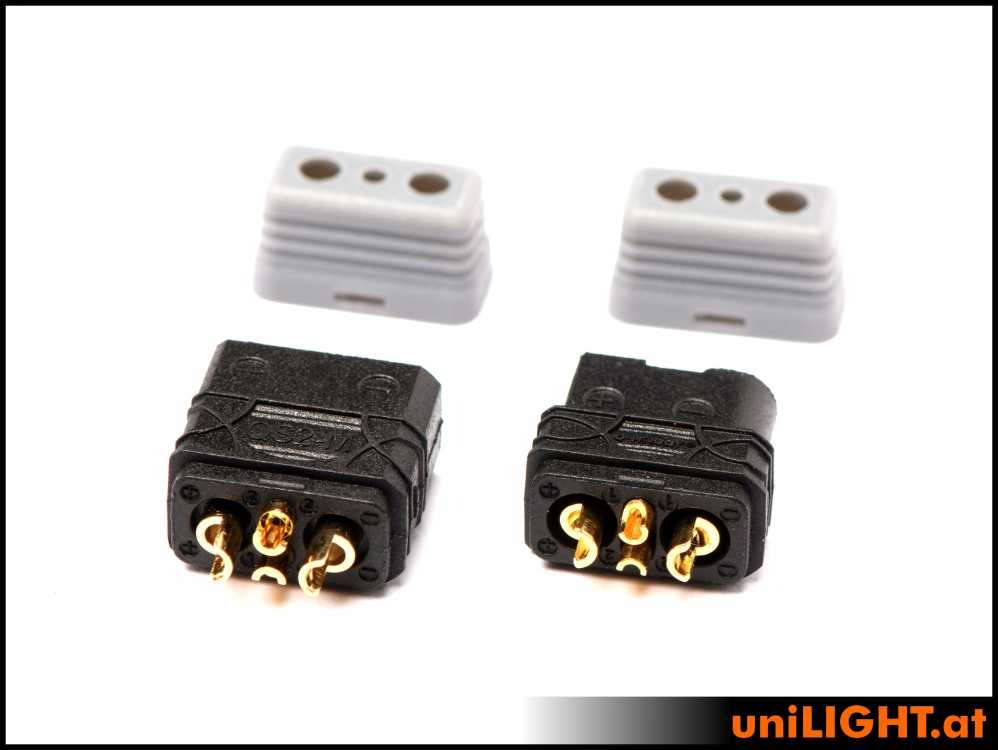 2 Leistungskontakten und 2 Signalkontakten. Ideal um die Verkabelung von Lichtern oder auch zwei Servos in der Fläche zuverlässig und kompakt zu realisieren.