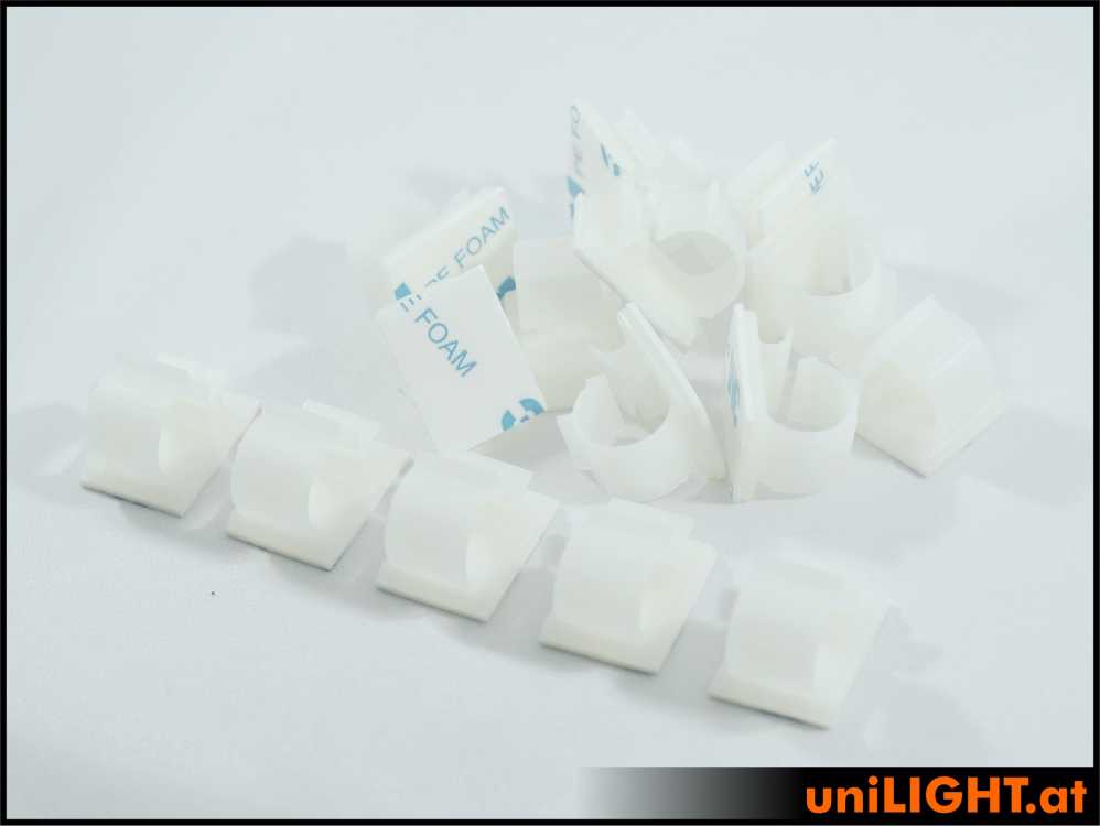 Selbstklebende Clips zur schnellen und sauberen Kabelführung. Einseitig Schaum-Montageband.