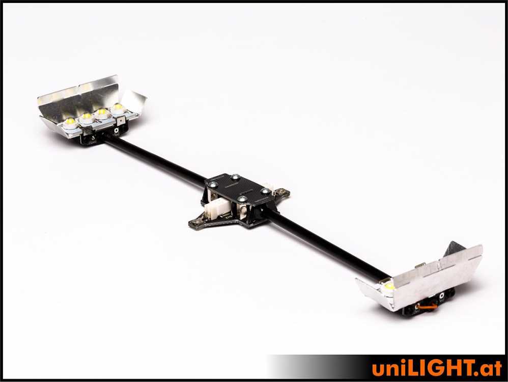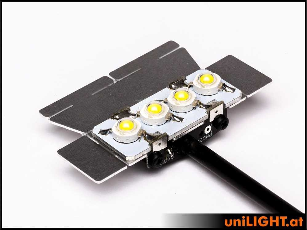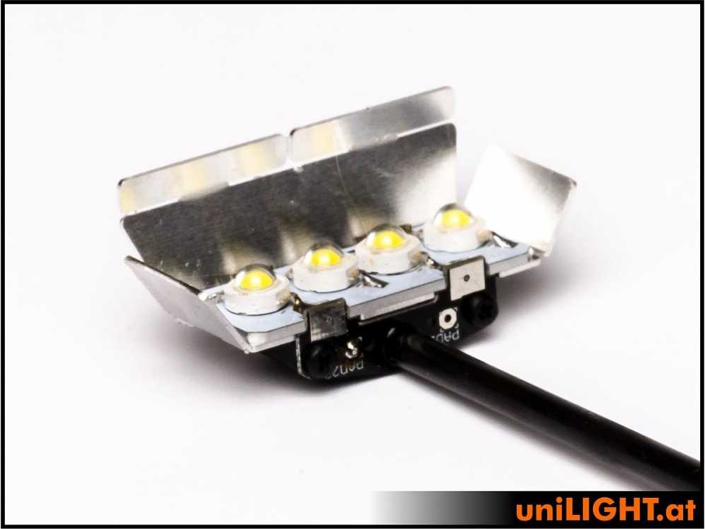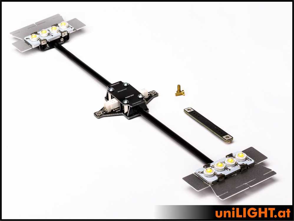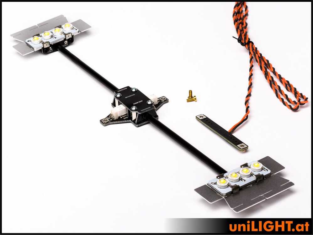 mit Montageplatte zum kabellosen Anschluss, 1m Anschlusskabel, fertig konfektioniert für Direktbetrieb an 2S LiPo und an jeder uniLIGHT Lichtsteuerung