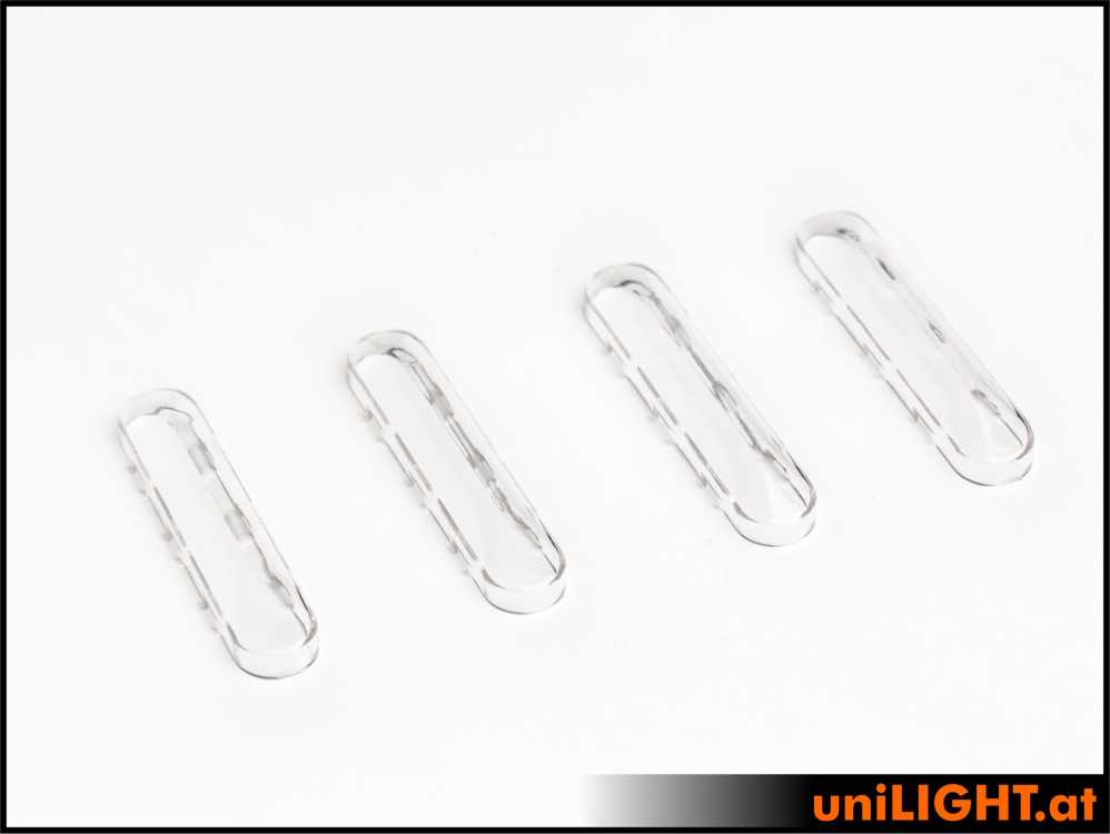4 Stück Lichtkappen für 12mm Lichtbalken. Die Kappen bestehen im Gegensatz zu tiefgezogenen Produkten aus hochwertigem Polycarbonat, sind schlagfest, wesentlich temperaturbeständiger und lackierbar.