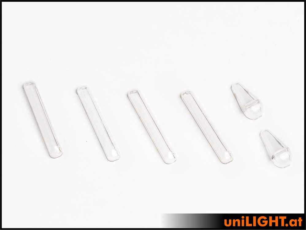 Ein Set aus Polycarbonat Kappen der Micro 5/7mm Serie. Das Set besteht aus 4 BAR und 2 PRO Kappen.