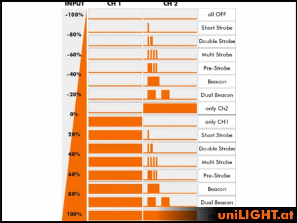 Unser 2-Kanal Modul Black.2+ ist die kleine Einsteigerversion in das uniLIGHT System jetzt mit uniLIGHTPLUS. Es ist einfach zu bedienen und liefert schnelle Ergebnisse für alle Modellbereiche. Die Hauptanwendung besteht in der Verwendung eines ACL oder BEACON Lichtes und zuschaltbaren Scheinwerfern. Im klassischem Betriebsmodus sind feste Lichtmuster hinterlegt und können wie gewohnt über den Servoweg aufgerufen werden. Unter Vernwendung des MODUL-PLUS Programmierkabels und des uniLIGHT.DESK können aber auch frei programmierbare Lichtmuster eingestellt werden.