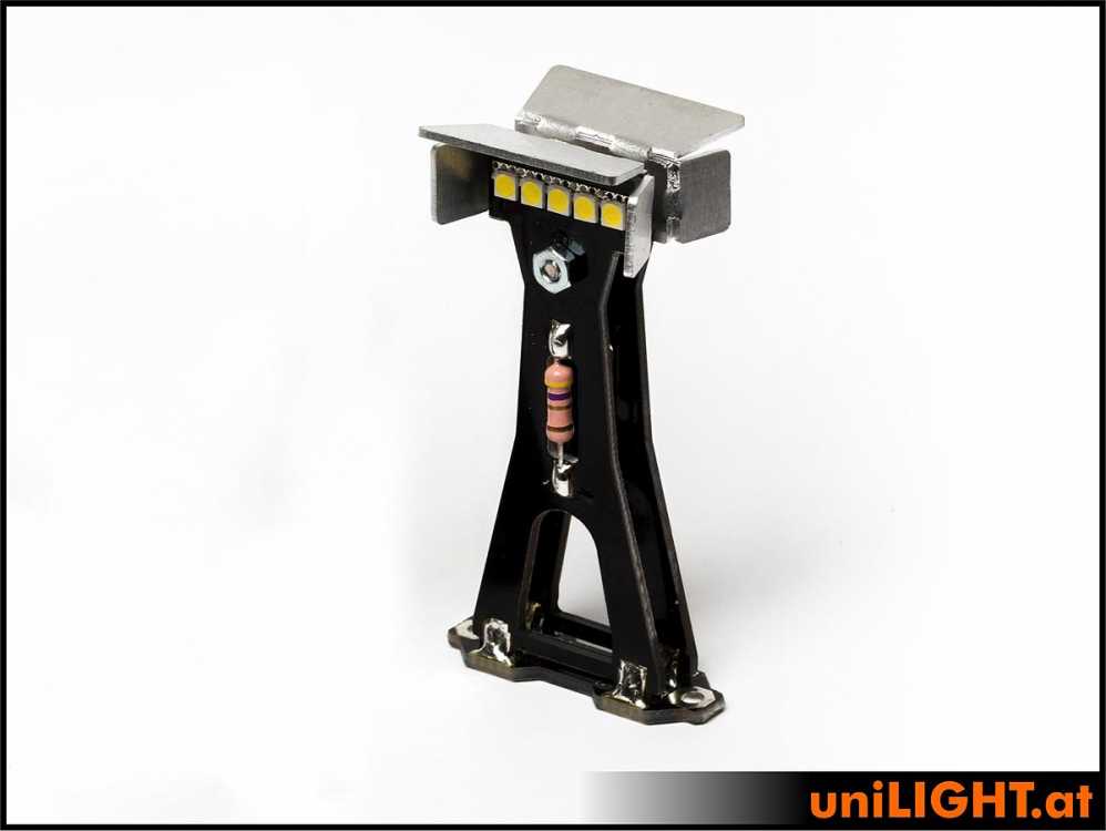 1 Stück mit Montageplatte zum kabellosen Anschluss, 1m Anschlusskabel, fertig konfektioniert für Direktbetrieb an 2S LiPo und an jeder uniLIGHT Lichtsteuerung