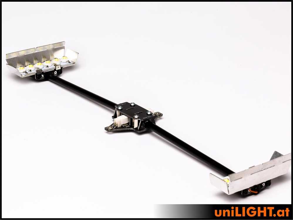 2x Wing-Blade, 2x Tail-Balde, bereit für Direktbetrieb an 2S LiPo und an jeder uniLIGHT Lichtsteuerung