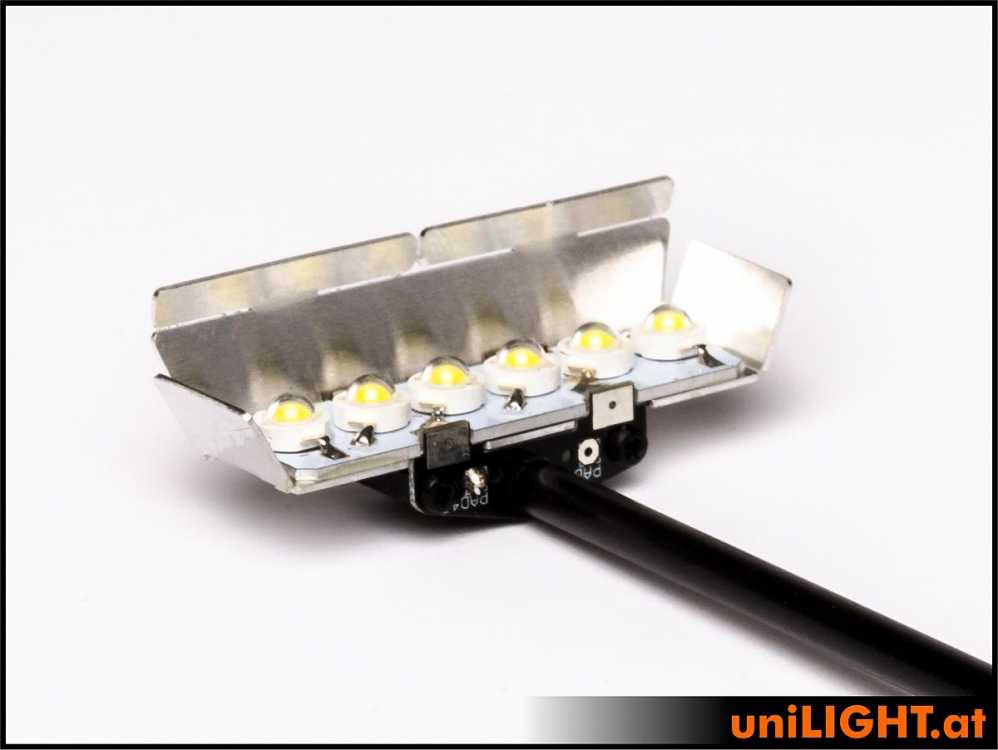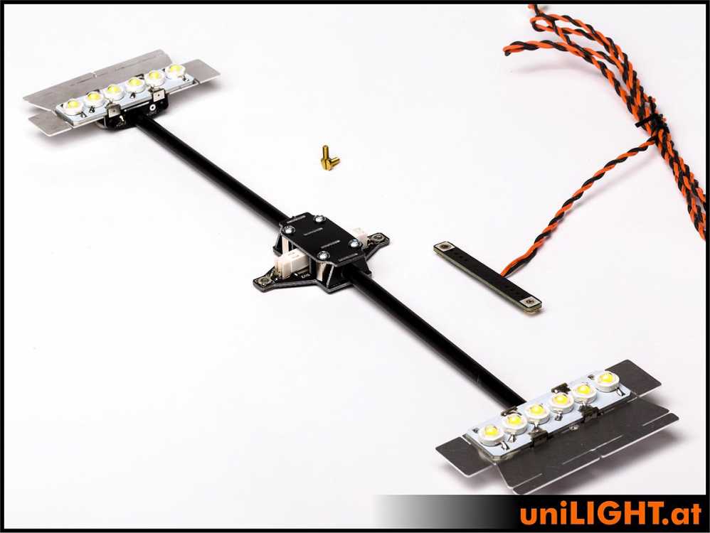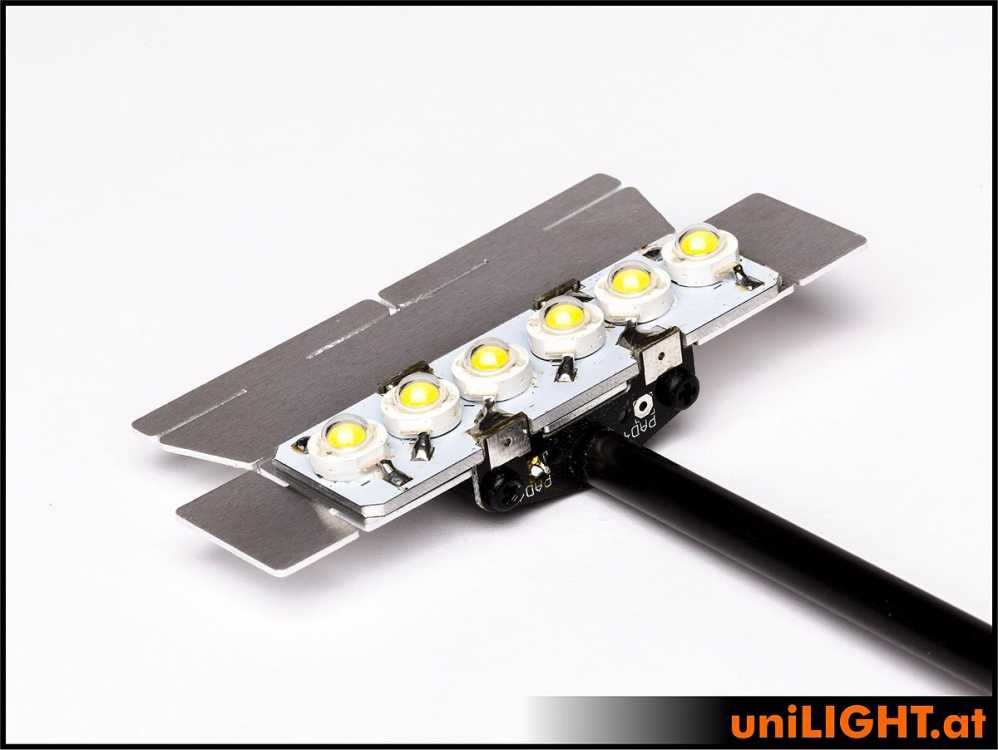 mit Montageplatte zum kabellosen Anschluss, 1m Anschlusskabel, fertig konfektioniert für Direktbetrieb an 2S LiPo und an jeder uniLIGHT Lichtsteuerung