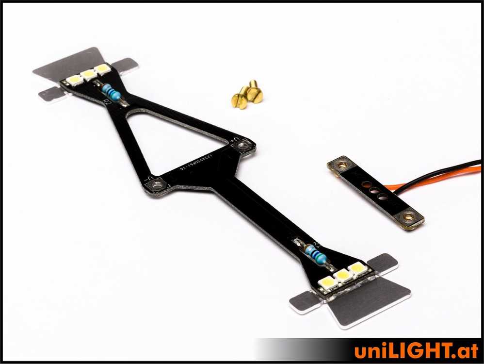 mit Montageplatte zum kabellosen Anschluss, 0.5m Anschlusskabel, fertig konfektioniert für Direktbetrieb an 2S LiPo und an jeder uniLIGHT Lichtsteuerung