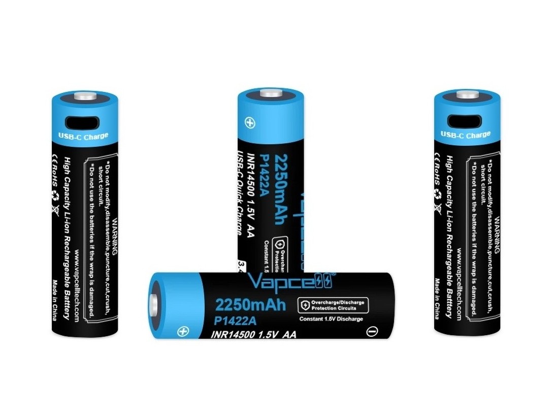 Vapcell 14500 Li-Ion Akku 1.5V 2250mAh – USB-C – AA Format – 4 Stück