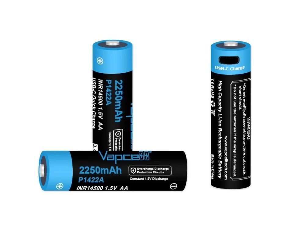 Vapcell Li-Ion Akku 14500 1.5V 2250mAh - USB-C - AA Batterie wiederaufladbar