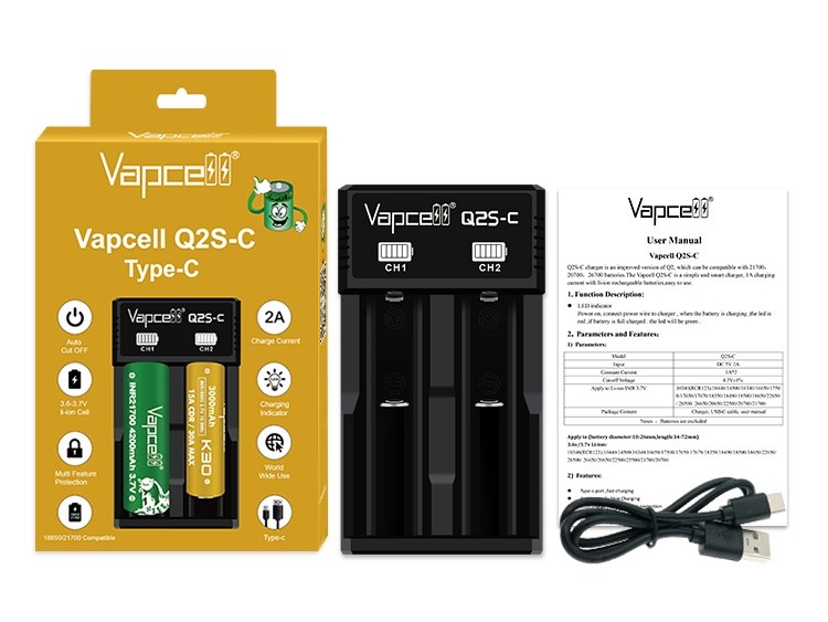 Vapcell Type-C Smart Ladegerät Q2S-C – Li-Ion