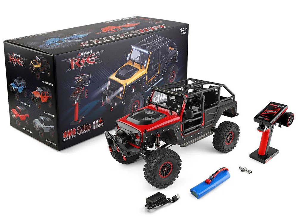 Der WLToys 104026 Pro ist ein detailreicher 1:10 Rock Crawler mit kräftigem Antrieb, elektrischem Winden-System und High-/Low-Gear-Schaltung. Mit vollwertigen Kugellagern, Metallgetriebe-Differenzialen, Portalachsen und einem robusten Chassis bietet er hervorragende Klettereigenschaften und maximale Traktion.