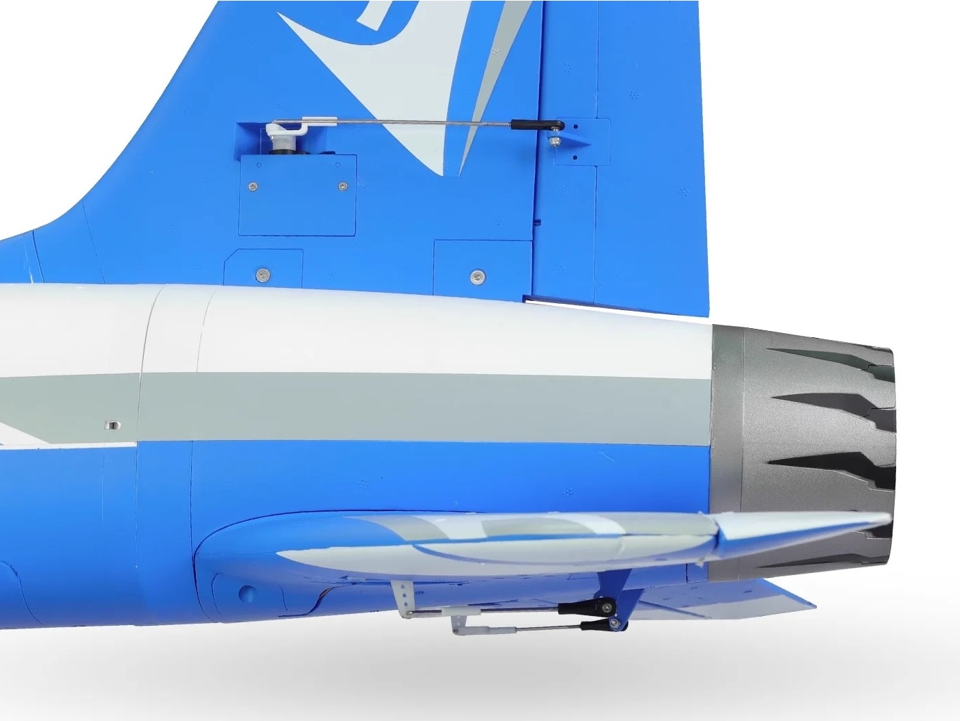 Dank dem sportlichen und äusserst aerodynamischen Design ist der Zeus 90mm der bisher schnellste Sportjet von Freewing und erreicht im Horizontalflug Geschwindigkeiten von bis zu 210 km/h. Weiter bietet die blau-grau-weisse Lackierung eine attraktive und auffällige Erscheinung, welche am Himmel gut zu erkennen ist. Die Flächen verfügen über ein Schnellverschluss-System, was das Anbringen und Entfernen der Tragflächen ohne Kleber und Schrauben erlaubt. Steigen Sie in die Lüfte und erleben Sie den unglaublichen Nervenkitzel und die atemberaubende Geschwindigkeit des Zeus!