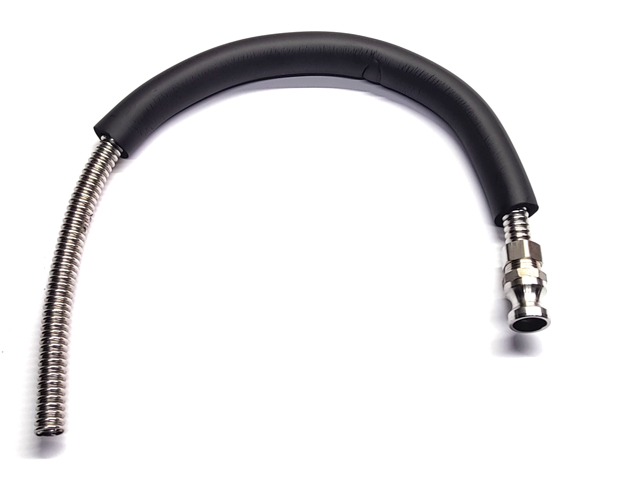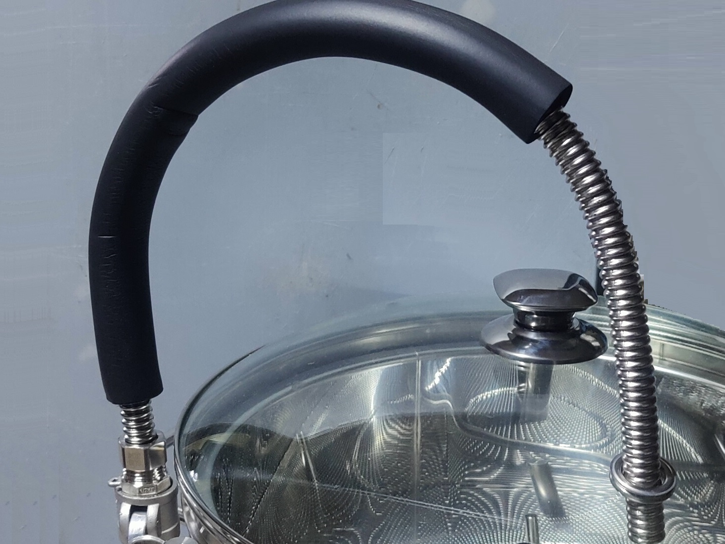 Die Zirkulationsleitung aus flexiblem Edelstahlrohr. Passt für verschiedene Braukessel.