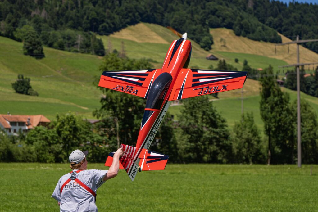Ich bin 1998 geboren und hatte vier Jahre später das erste Mal einen Sender in der Hand. Zum Hobby kam ich durch die Gegebenheit, dass der Modellflugplatz Rechthalten auf unserem Land liegt.