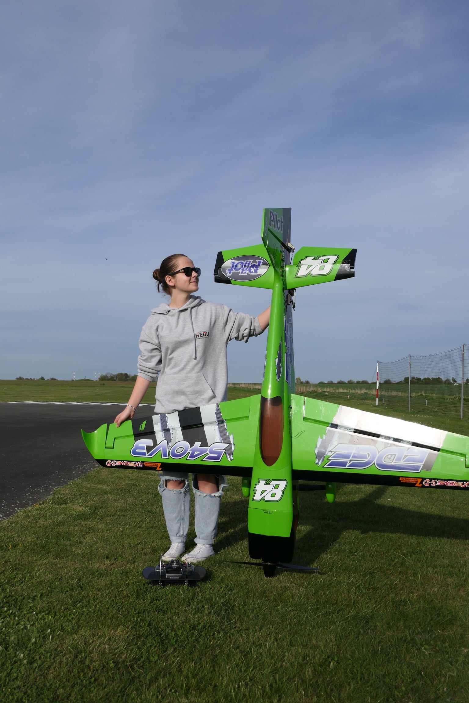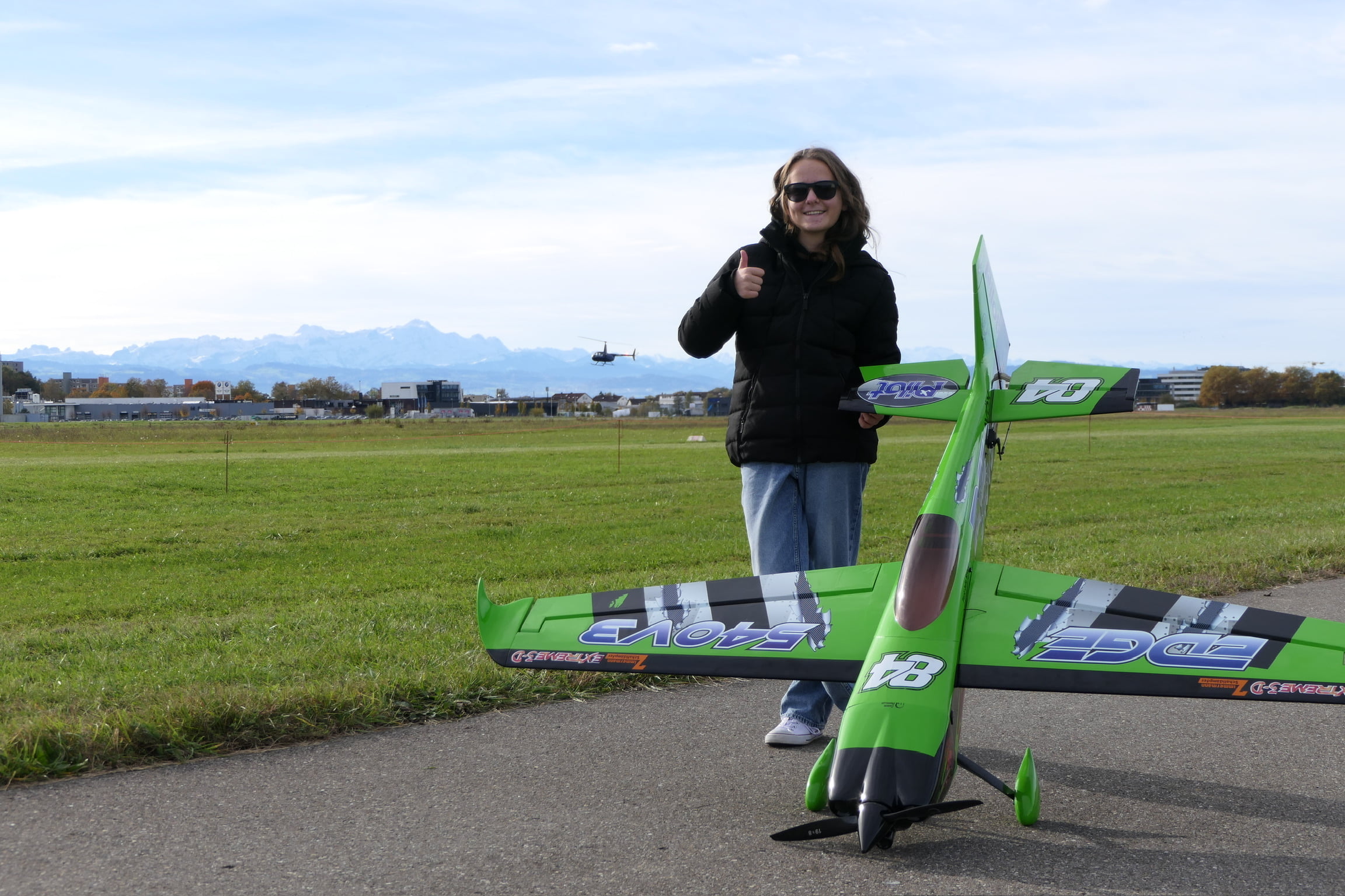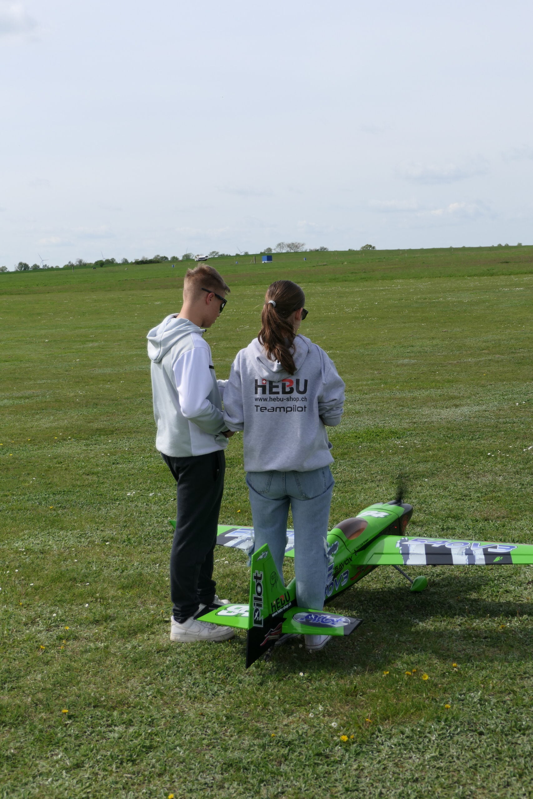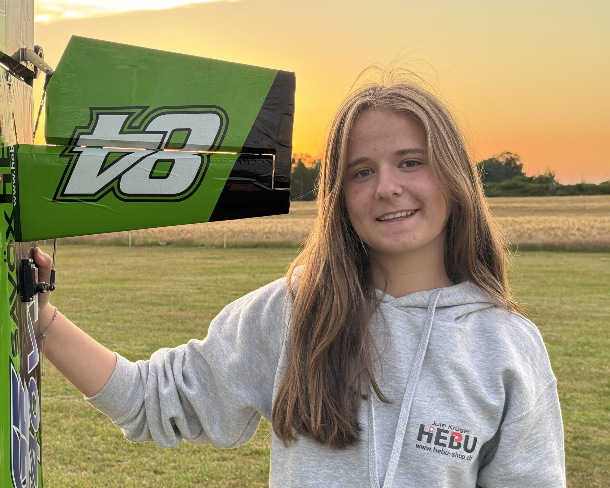 Es ging schnell voran: von der Fun Cup über eine E-Flite Extra 300, die ich zum Geburtstag bekam, bis hin zur Graupner Edge 540, die wir im Winter 2022-2023 zusammen aufbauten. Leider hatte die Edge 540 ein kurzes Leben und stürzte nach nur drei Flügen ab. Obwohl ich enttäuscht war, liess ich mich nicht entmutigen. Bald fanden wir eine neue Edge 540, diesmal von Pilot RC. Diese Maschine, die ich liebevoll “Ingo” nannte, begleitete mich bisher auf zahlreichen Events, darunter die „Stars des Jahres“ bei der Messe Friedrichshafen, wo ich das erste Mal HEBU traf. Nach langem Kontakt wurde ich 2024 Teampilotin bei HEBU, was mich unglaublich stolz macht.