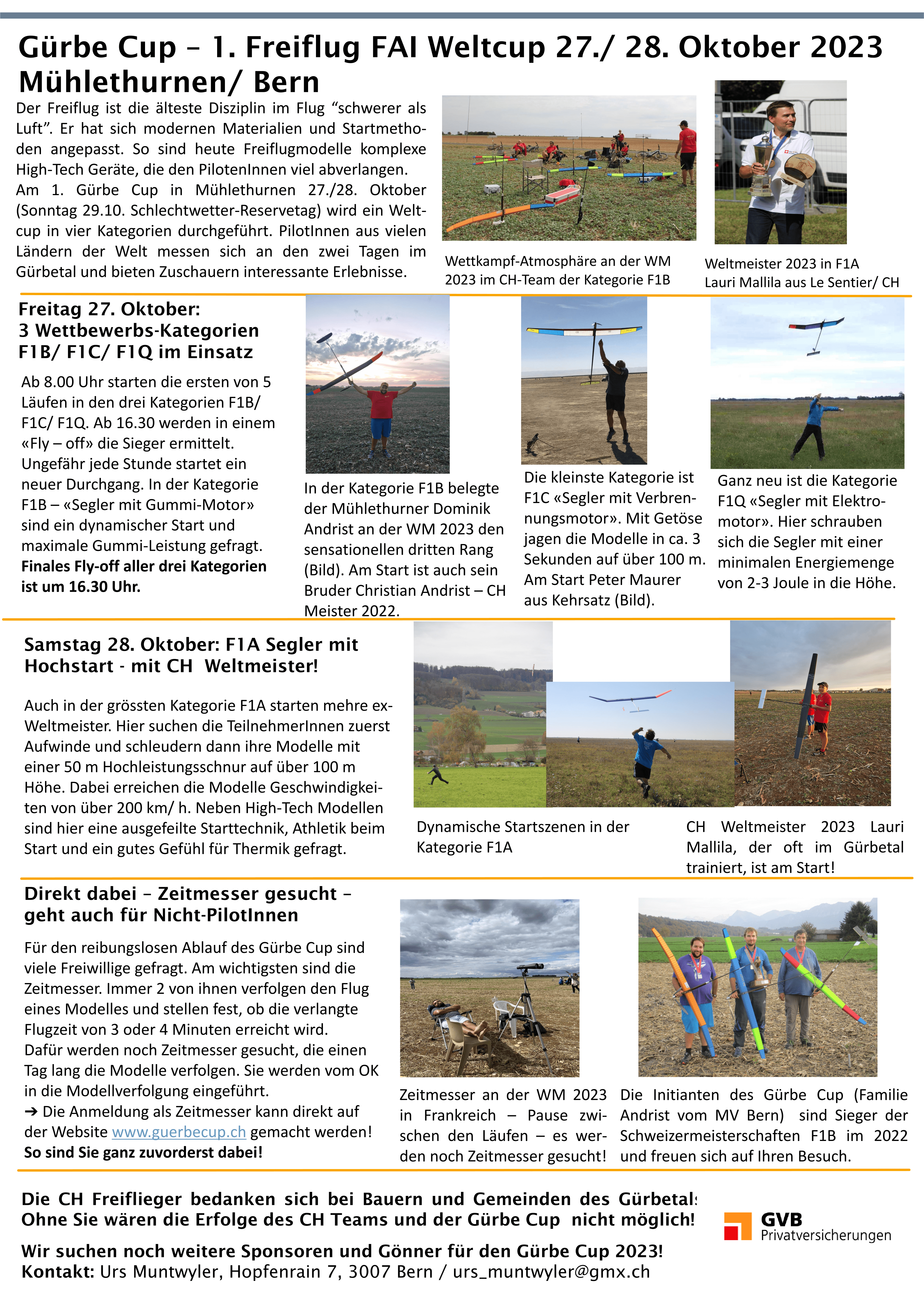 27. - 29.10.2023 - Gürbe Cup Freiflugklassen F1A/B/C/Q
