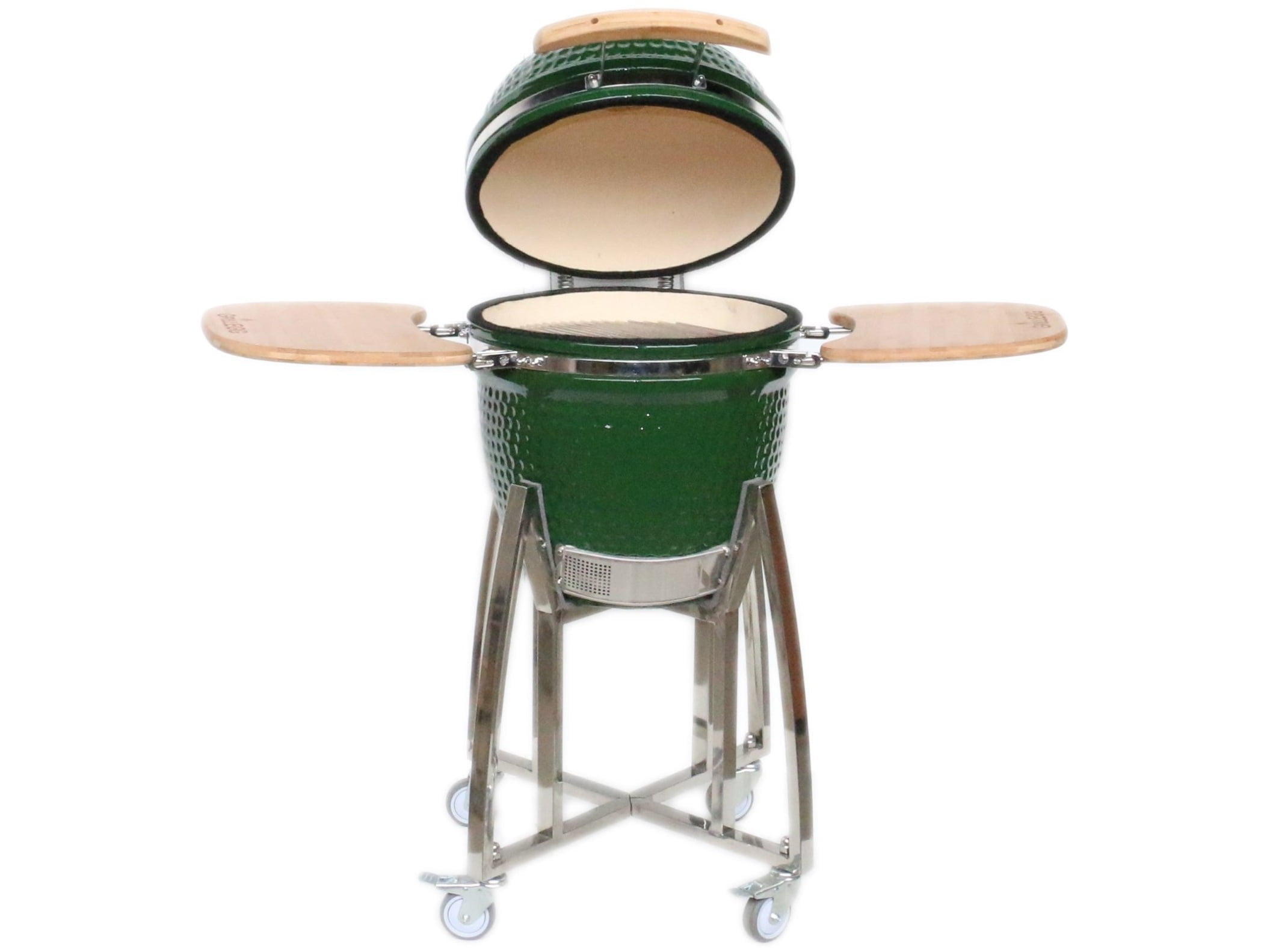 Wenn der Grill einmal aufgeheizt ist, speichert er die Wärme effizient. Gleichzeitig wird er dank der dickeren Wand aussen nicht so heiss wie ein Kugelgrill aus Metall und stellt so kein grosses Verbrennungsrisiko dar. Die gleichmässige Temperaturabgabe im Zusammenspiel mit der Luftzirkulation im Garraum eröffnen ganz neue Möglichkeiten auf dem Grill.